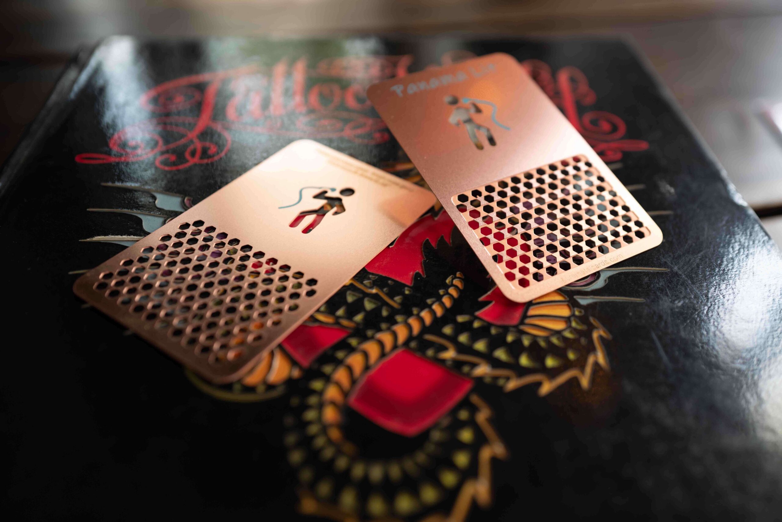 These cards are 0.5mm/0.02” in card thickness. Each metal card is also individually wrapped in a transparent plastic sleeve.